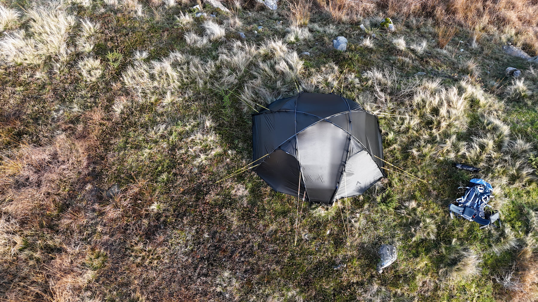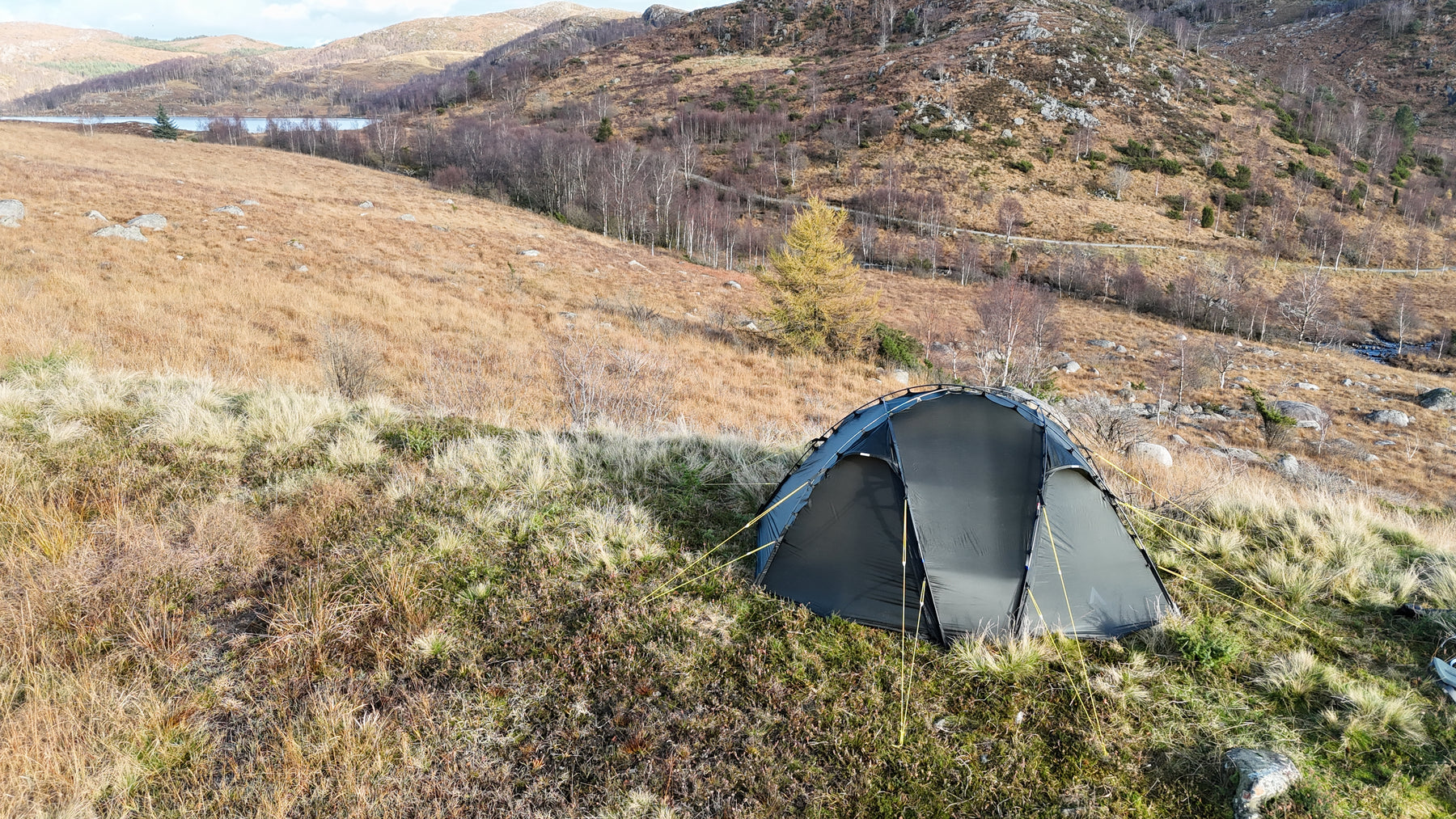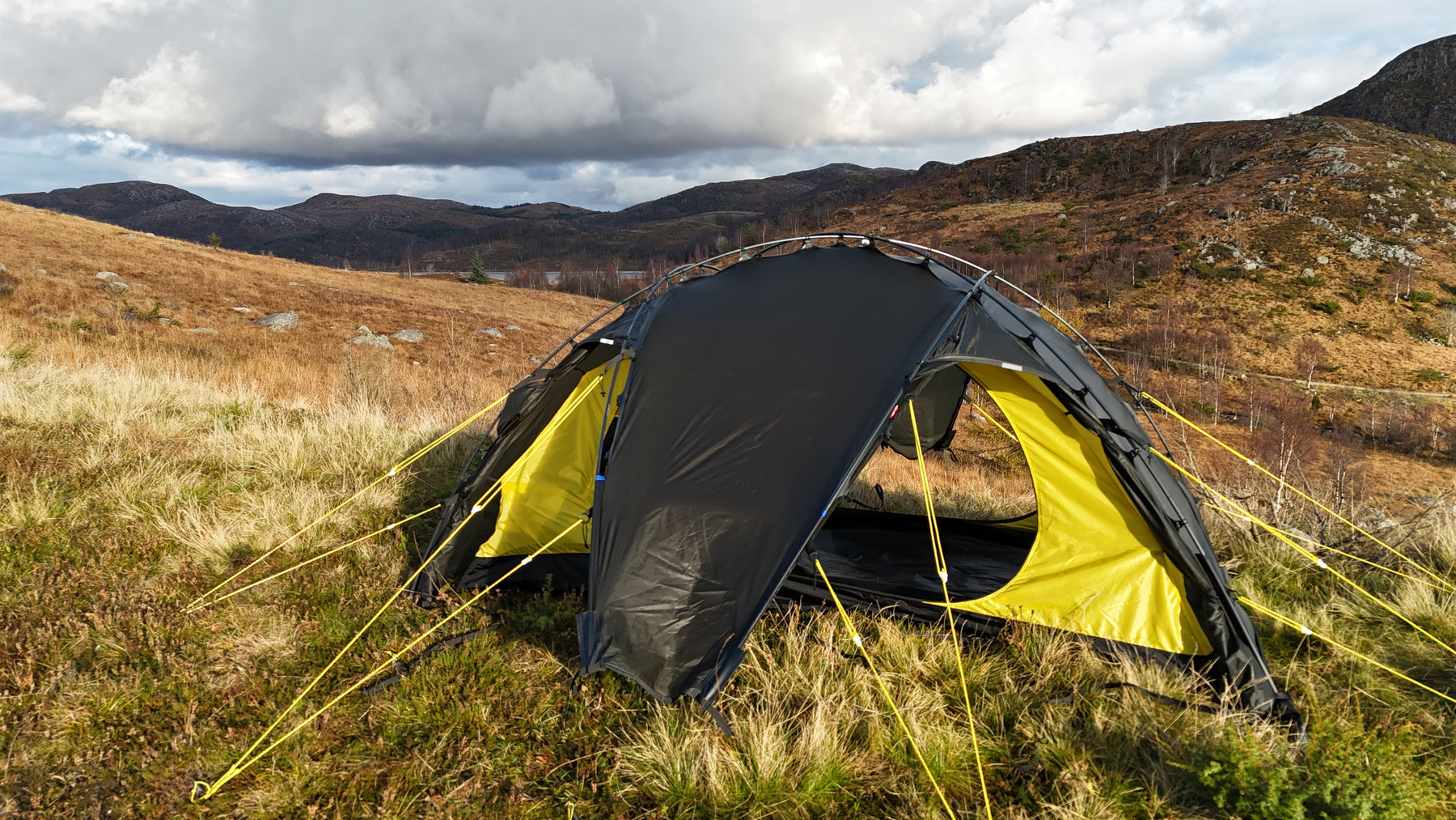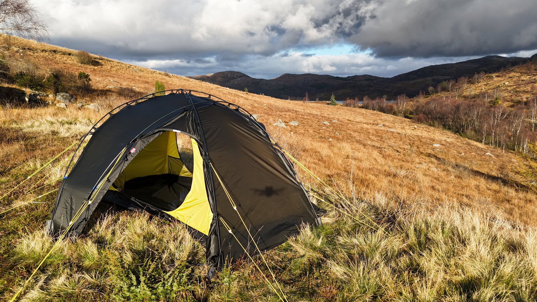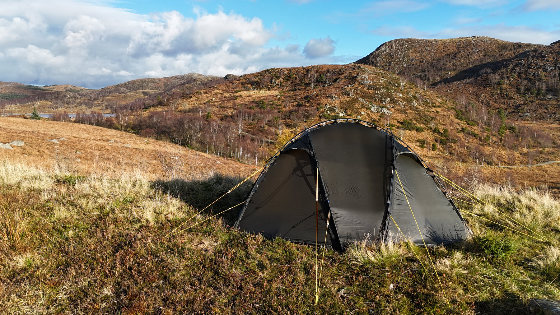 Silhuetten er ren, gjennomtenkt og naturlig i landskapet, samtidig som den etterlater minimale spor. Oppsettet er raskt og intuitivt. Med litt øvelse har du et trygt og solid leirsted på 5–6 minutter, klart for varme og hvile etter en lang dag ute.
